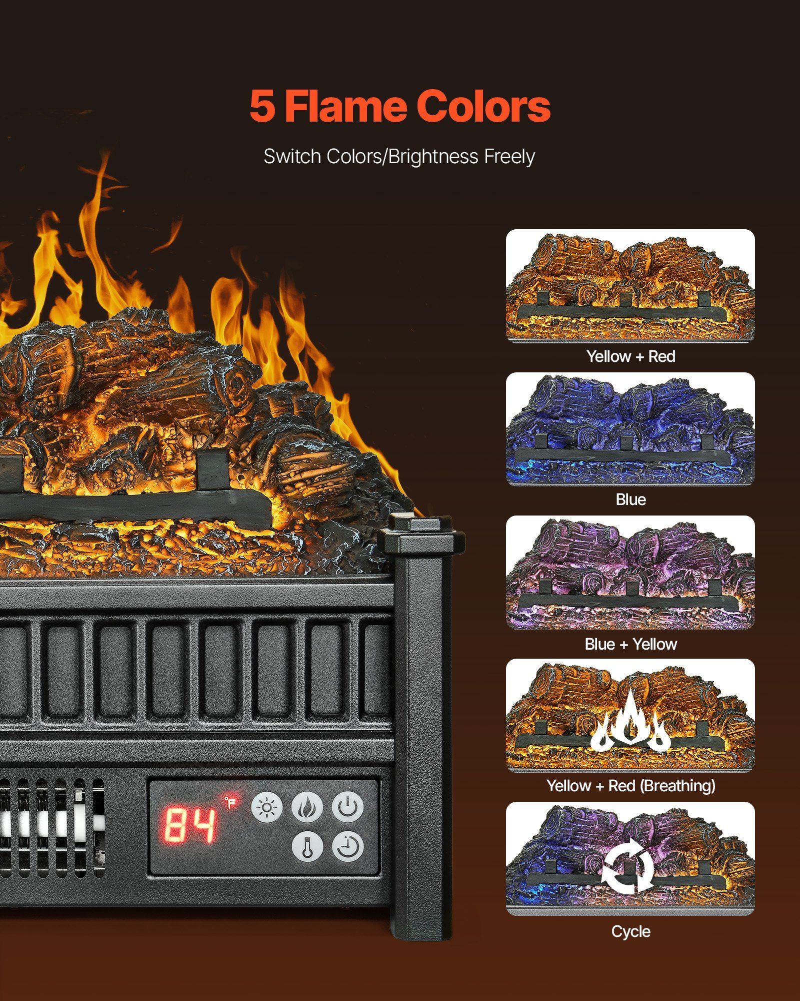2.Adjustable Brightness/Color: 5 color options and 5 brightness levels to create a romantic, cozy atmosphere. Customize your home condition and enjoy visual pleasure with your electric insert heater