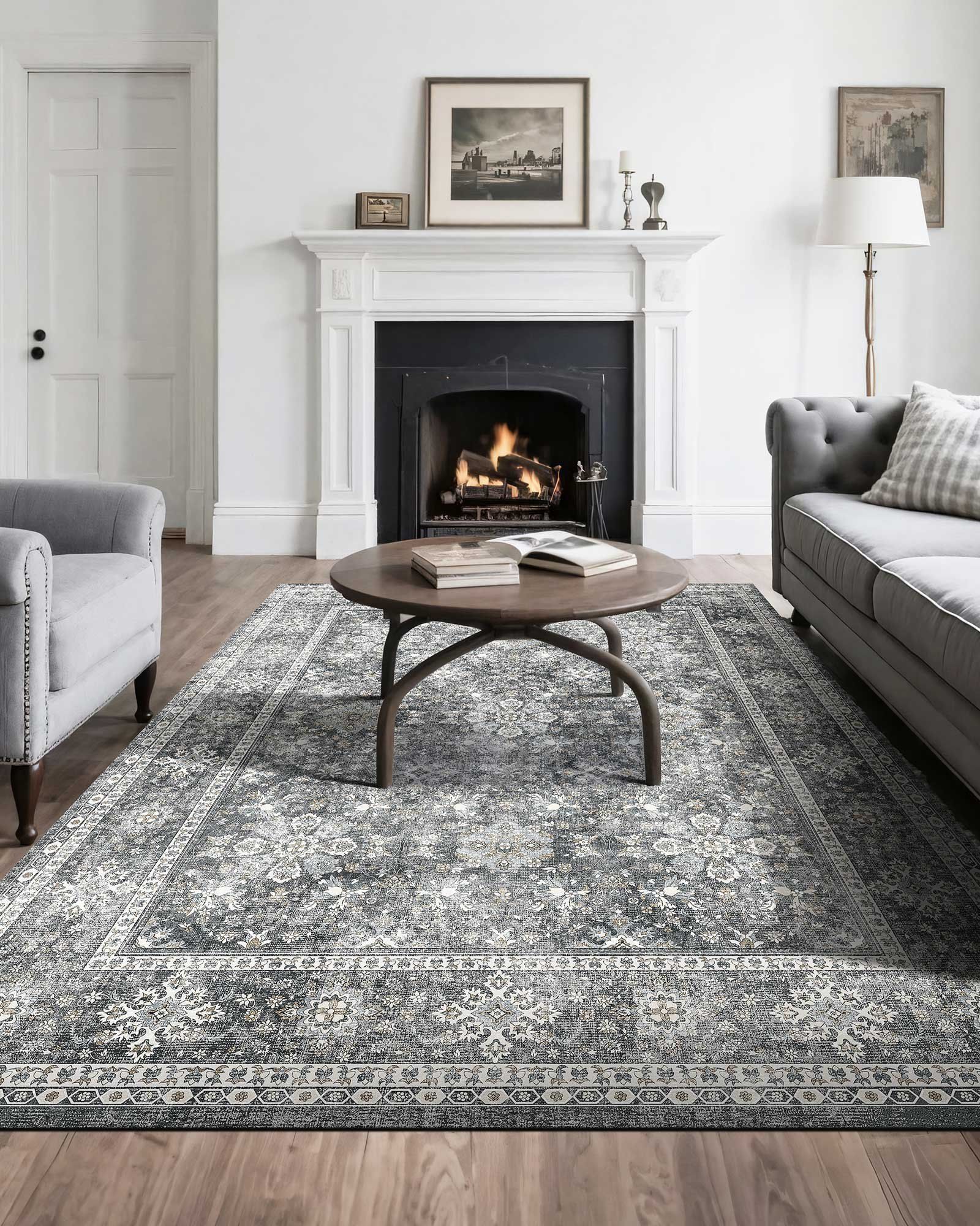 Large Area Rug 8 x 10 ft Anti-Skid and Tear-Resistant Floor Mat Vintage Gray