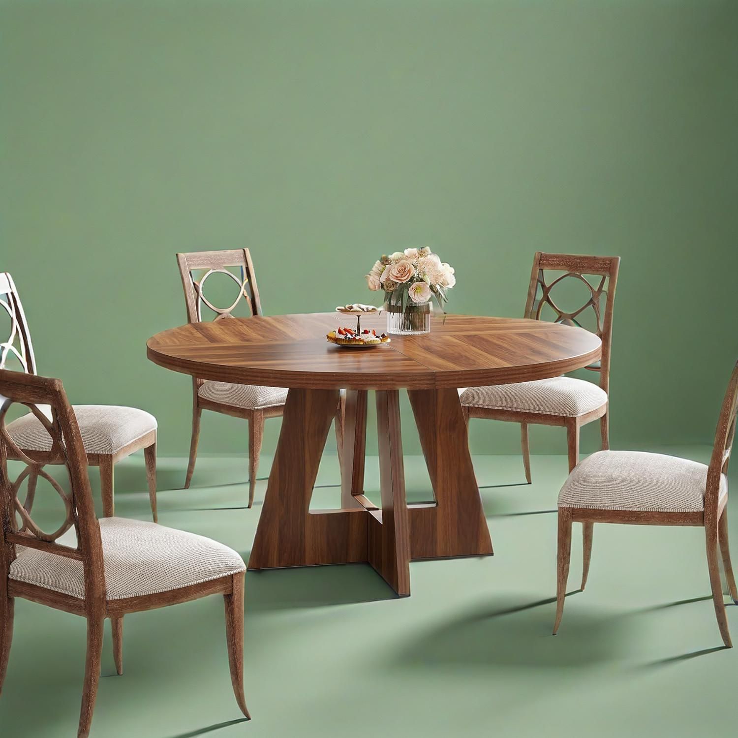 Spacious Design: Tribesigns Round Dining Table boasts a 47-inch diameter tabletop which consists of 4 engineered wood board, comfortably seating 4-6 people.