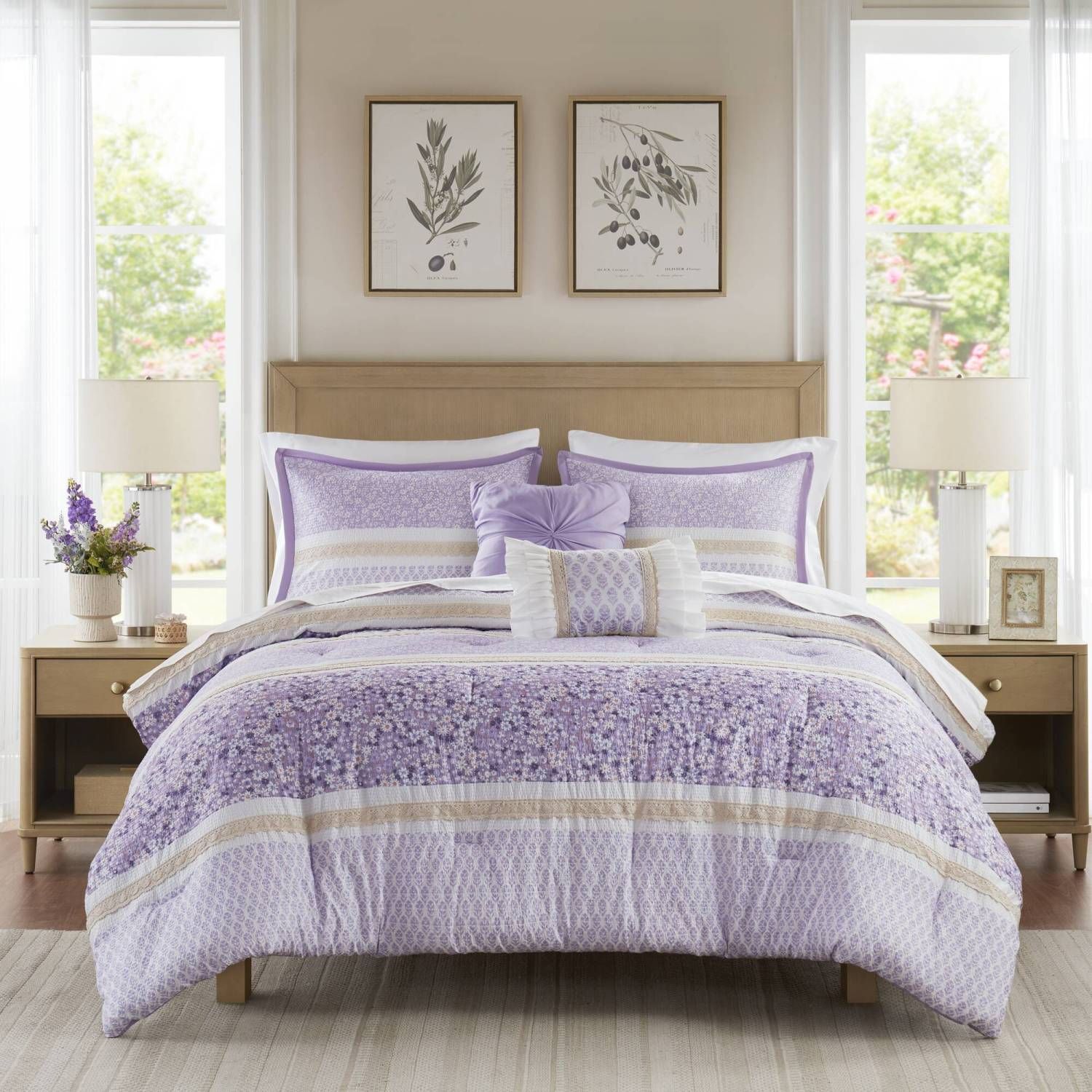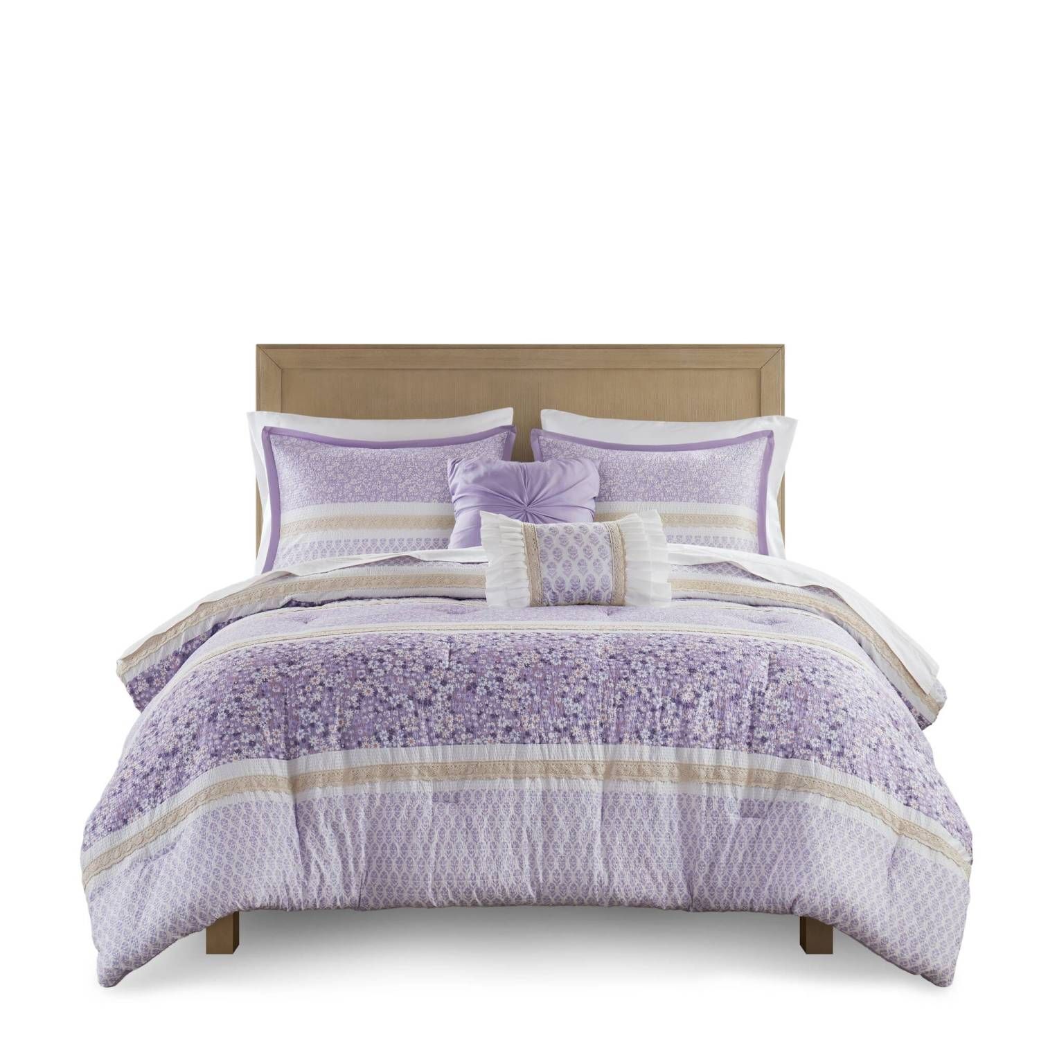 Set includes comforter, 2 matching shams and 2 throw pillows