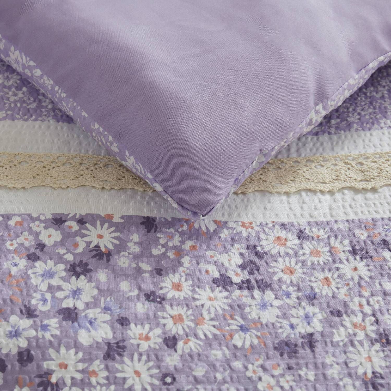 Comforter/Sham: Seersucker microfiber with lace, printed; solid microfiber, 100% polyester reverseFill: 100% polyesterPillow: 100% polyester