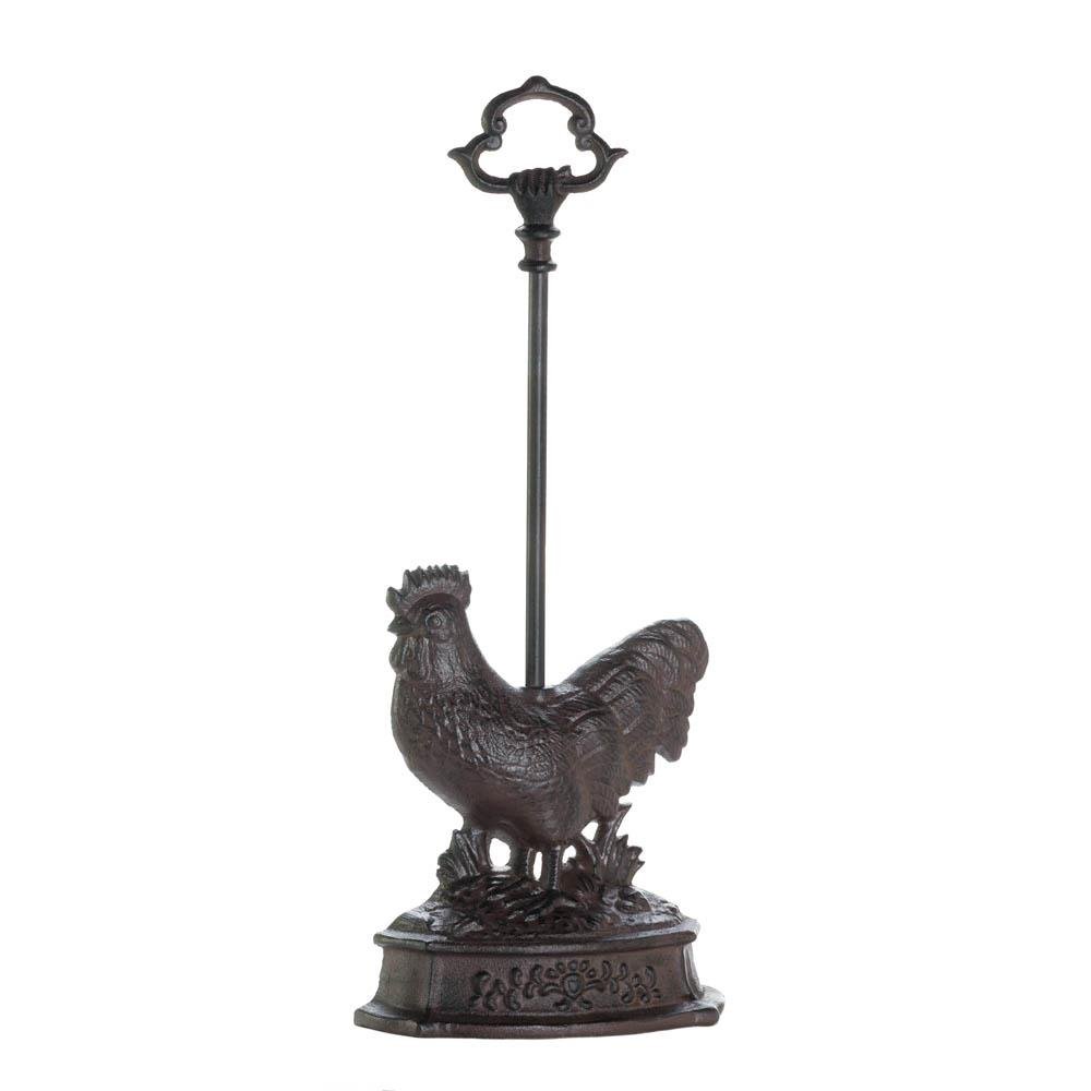 • Keeping your door open has never looked more welcoming than it does with this cast-iron rooster. This unique door stopper features a strutting rooster below, and above is a handy handle that makes moving it a cinch.