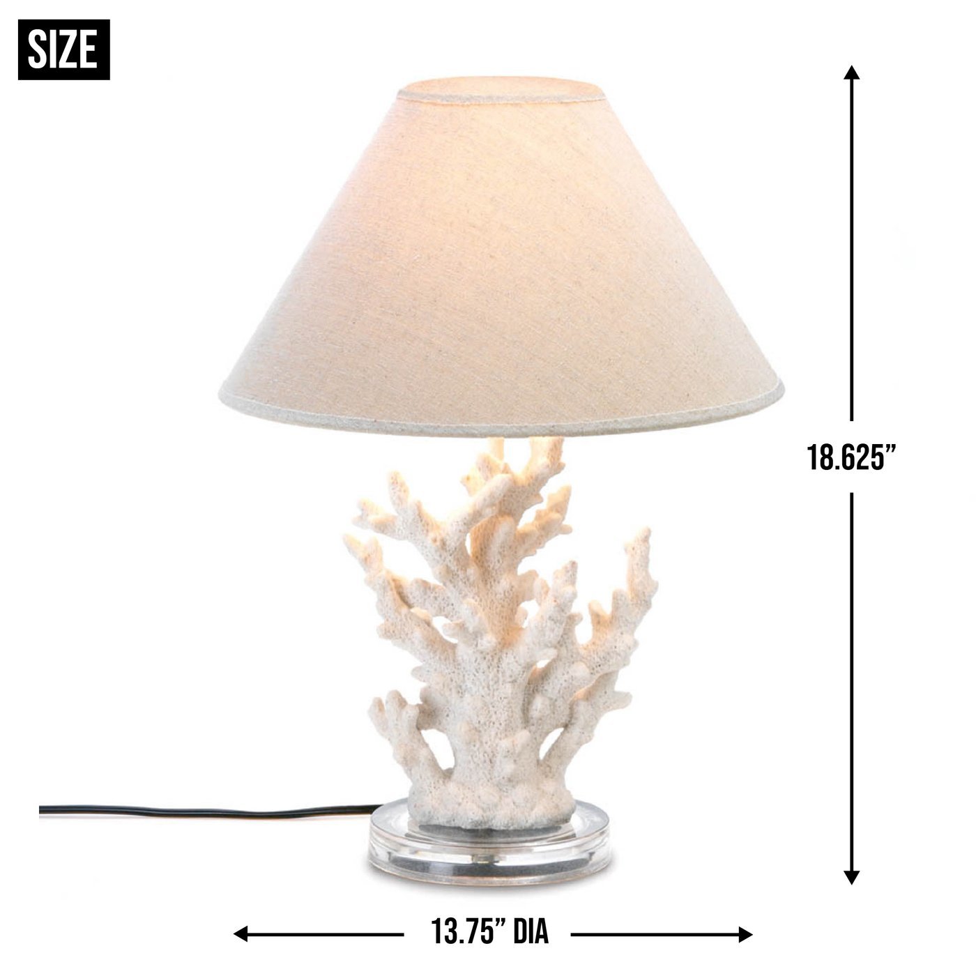 • A splash of seaworthy style to light up your life! This stunning table lamp features artistically rendered ivory sprigs of coral topped with a handsome neutral-color shade. Turn on the lamp and the cora, and your room will be lit up with a warm and inviting glow.